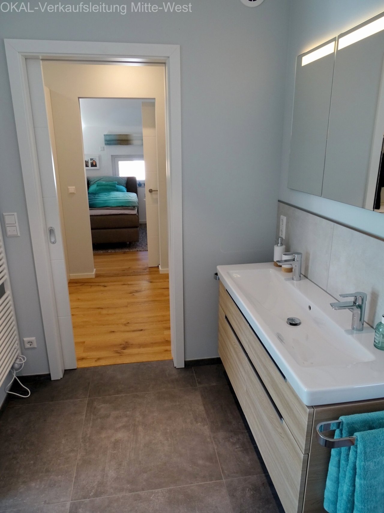 Groß, zeitlos-elegant und bis ins kleinste Detail durchdacht – das ist unsere Stadtvilla 16. Auf einer Fläche von mehr als 180 m2, verteilt auf zwei Ebenen, ist ausreichend Platz zum Leben, Arbeiten und Relaxen. Zentraler Ort der Begegnung für Familie und Freunde ist der rund 50 m2 große Wohn-Ess-Koch-Bereich. Große Fensterfronten ermöglichen einen direkten Zugang zum Garten und sorgen für maximalen Lichteinfall. Besonders praktisch: Direkt an die Küche schließen sich eine Speisekammer sowie der große Hauswirtschaftsraum an. Außerdem im Erdgeschoss: komfortables Arbeitszimmer und Gäste-WC. Über den offenen Dielenbereich geht es ins Obergeschoss und damit in den Rückzugsort für die Familienmitglieder. Die Eltern verfügen hier über eine Wohlfühloase mit großem Schlafbereich, separatem Ankleidezimmer und sich unmittelbar anschließendem Badezimmer mit Wanne, Dusche und WC. Gegenüber: das Reich der Kinder. Die beiden geräumigen Zimmer werden durch ein eigenes Bad voneinander getrennt. Abgerundet wird das Raumangebot durch einen praktischen Abstellraum.