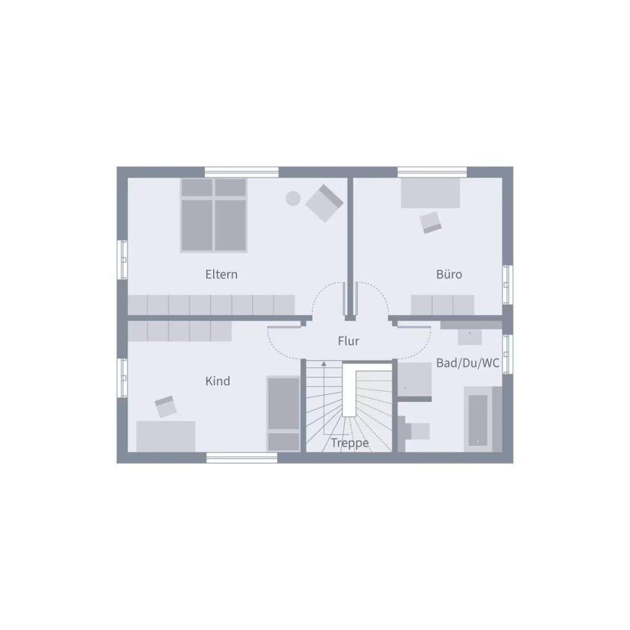 Schlichte Eleganz und ein durchdachtes Raumkonzept verleihen diesem Einfamilienhaus seine besondere Ausstrahlung. Die klare Linienführung der Architektur wird von einer zweifarbigen Fassadengestaltung betont, die Tiefe und Charakter schenkt. Im Inneren setzt sich diese Klarheit fort: Das Erdgeschoss öffnet sich zu einem lichtdurchfluteten Wohn-, Ess- und Kochbereich, der fließend in den Garten übergeht - ein Ort für lebendige Begegnungen und stille Augenblicke. Hauswirtschaftsraum und Gäste-WC sind dezent abgetrennt und sorgen für praktische Funktionalität. Von der großzügigen Diele führt eine Treppe ins Dachgeschoss, wo der Raum optimal genutzt ist: Ein helles Kinderzimmer, ein Elternschlafzimmer, ein Büro und ein komfortables Bad mit Wanne, Dusche und WC schaffen ein harmonisches Wohnumfeld. Auf rund 130 m² entsteht so ein Zuhause, das beständig Freude schenkt und Generationen verbindet.