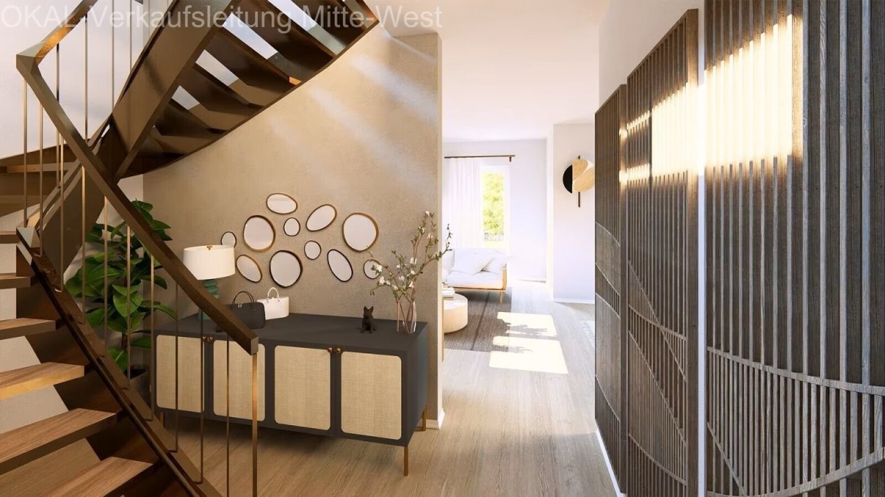 Auf zwei Ebenen vereint dieses Haus durchdachte Planung mit markantem Design. Die Fassade spielt mit Symmetrien und verleiht dem Baukörper eine besondere Präsenz, während der überdachte Eingang einen geschützten, einladenden Empfang schafft. Im Erdgeschoss öffnet sich die Diele zu einer klar gegliederten Raumfolge: Hauswirtschaftsraum und Gäste-WC sind dezent platziert, ein separates Büro bietet Rückzug für konzentriertes Arbeiten. Herzstück ist der offene Wohn-, Ess und Kochbereich, in dem großzügige Flächen und fließende Übergänge das Miteinander zum Erlebnis machen. Im Dachgeschoss sorgt die clevere Grundrissgestaltung für große Räume und einen bewusst klein gehaltenen Flur. Zwei helle Kinderzimmer, ein Elternschlafzimmer und ein komfortables Bad mit Wanne und Dusche schaffen Platz für alle Lebensphasen. Mit 149 m² bietet dieses Haus Raumqualität, die inspiriert - funktional, großzügig und im Detail präzise gestaltet.