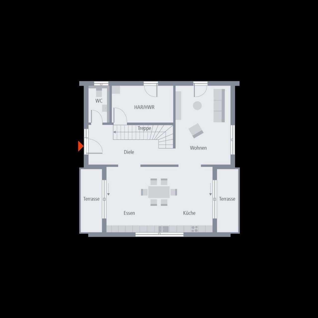 Schon von außen ein echtes Highlight! Die Fassade besticht durch ihre moderne, durchdachte und außergewöhnliche Architektur. Durch den besonderen Grundriss mit einem eingerückten Bereich entstehen sowohl auf der Vorder- als auch auf der Rückseite zwei windgeschützte Terrassenbereiche. Extravaganz und Eleganz in Vollendung. Das trifft auch auf das Innere zu: Hier überzeugt die durchdachte Raumaufteilung ebenso wie der großzügige Schnitt mit einem großen Wohn-Koch-Bereich und sich anschließendem Wohnzimmer. Komplettiert wird das Erdgeschoss durch einen Hauswirtschaftsraum sowie ein Gäste-WC. Über die zentral gelegene Treppe erreicht man das Obergeschoss mit Galerie, Elternschlafzimmer, einem großen Badezimmer mit Badewanne und Dusche sowie zwei Kinderzimmern. Ein absolutes Highlight: der große Balkon mit edlem Glasgeländer.