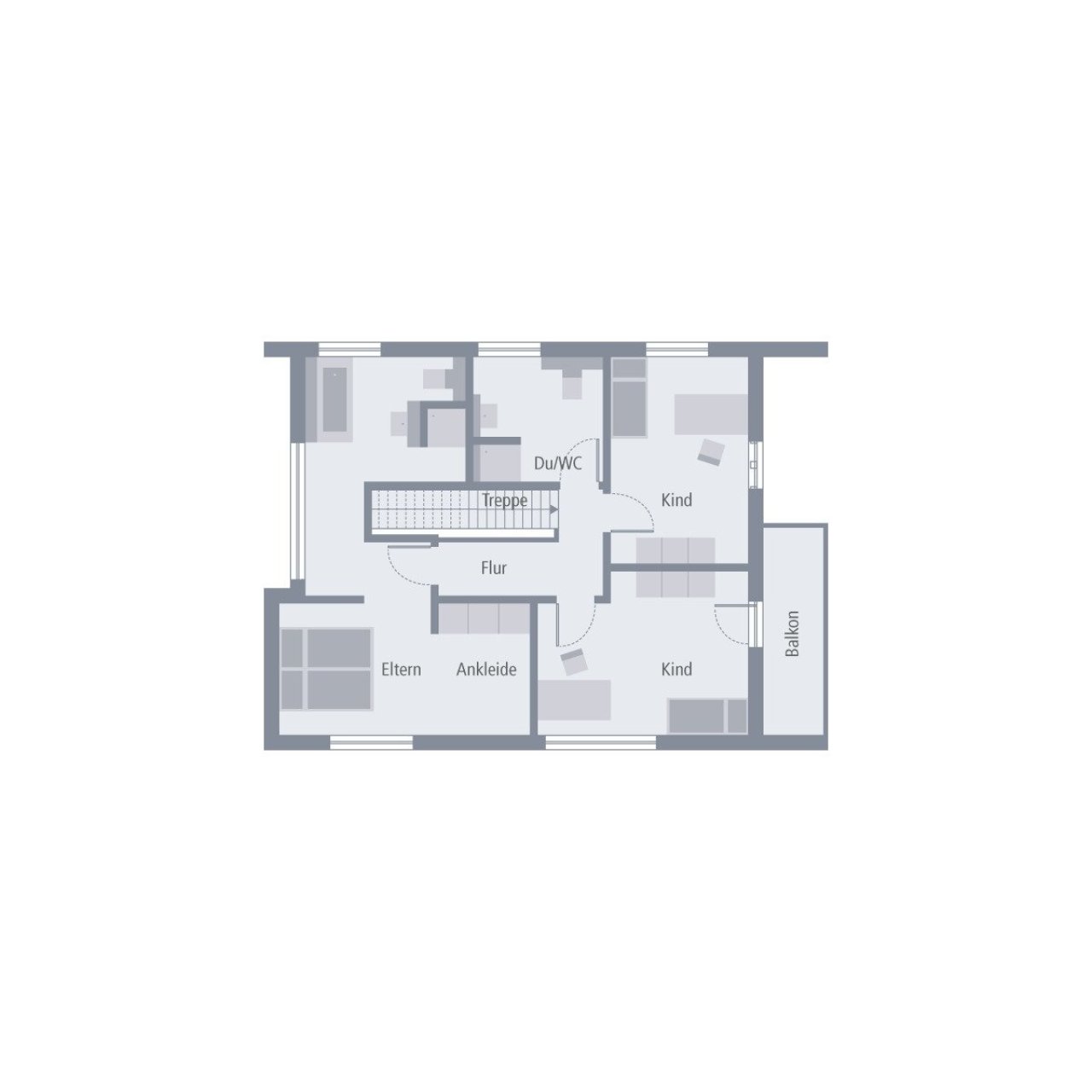 Klassisch und stilvoll präsentiert sich das 2-geschossige Einfamilienhaus Design 13. Unter dem Satteldach vereinen sich moderne Architektur und höchster Wohnkomfort. Im Entrée trennt die offene Treppe WC und HWR räumlich vom restlichen Wohnbereich ab. Auch das Büro findet hier seinen Platz. Der offene und helle Koch- und Wohnbereich wird durch ein freistehendes Wandelement gekonnt unterbrochen. Vom Wohn- und Esszimmer geht es zur großflächigen Eckterrasse. Im Obergeschoss ist die Elternsuite mit Bad und Ankleide dank kluger Raumaufteilung geschickt von den Kinderzimmern mit eigenem Dusch-WC abgegrenzt. Der Dachvorsprung an der Giebelseite setzt nicht nur gestalterische Akzente, sondern sorgt auch für einen geschützten Aufenthalt im Freien.