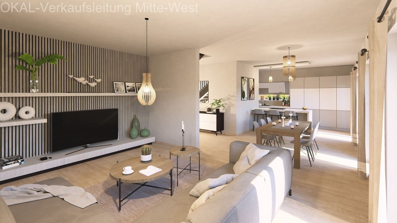 Groß, zeitlos-elegant und bis ins kleinste Detail durchdacht – das ist unsere Stadtvilla 16. Auf einer Fläche von mehr als 180 m2, verteilt auf zwei Ebenen, ist ausreichend Platz zum Leben, Arbeiten und Relaxen. Zentraler Ort der Begegnung für Familie und Freunde ist der rund 50 m2 große Wohn-Ess-Koch-Bereich. Große Fensterfronten ermöglichen einen direkten Zugang zum Garten und sorgen für maximalen Lichteinfall. Besonders praktisch: Direkt an die Küche schließen sich eine Speisekammer sowie der große Hauswirtschaftsraum an. Außerdem im Erdgeschoss: komfortables Arbeitszimmer und Gäste-WC. Über den offenen Dielenbereich geht es ins Obergeschoss und damit in den Rückzugsort für die Familienmitglieder. Die Eltern verfügen hier über eine Wohlfühloase mit großem Schlafbereich, separatem Ankleidezimmer und sich unmittelbar anschließendem Badezimmer mit Wanne, Dusche und WC. Gegenüber: das Reich der Kinder. Die beiden geräumigen Zimmer werden durch ein eigenes Bad voneinander getrennt.…